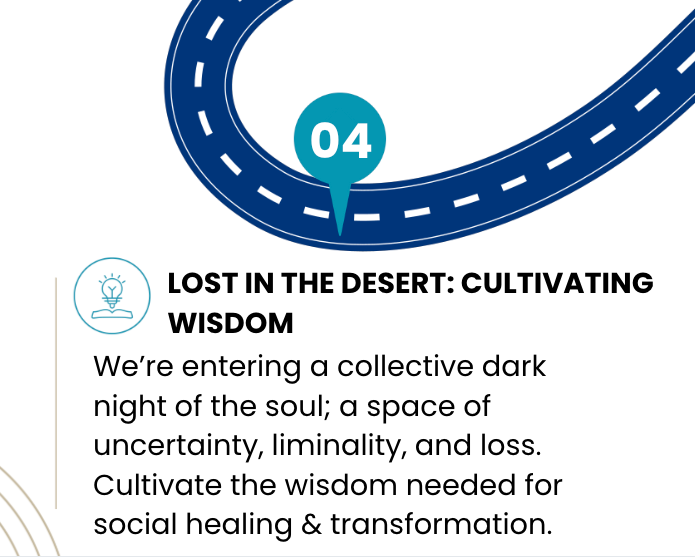 In uncharted territory - in the deserts and space of the unknown and uncertain - it’s not uncommon to be filled with fear, loss, grief or the “dark night of the soul”. Indeed, collectively, we are moving through a dark night of the soul as we transition from one form of identity & meaning (partisan, binary, fearful, othered) to one more just, loving and regenerative.
