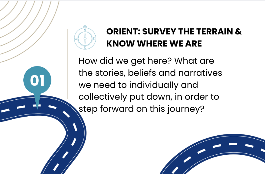 Orienting - knowing where we are - is what allows us to look squarely at the old story, at what we’re carrying and where we choose what we wish to put down, and what we wish to carry forward. It’s where we do the foundational work that lets us take that first step into new sands.