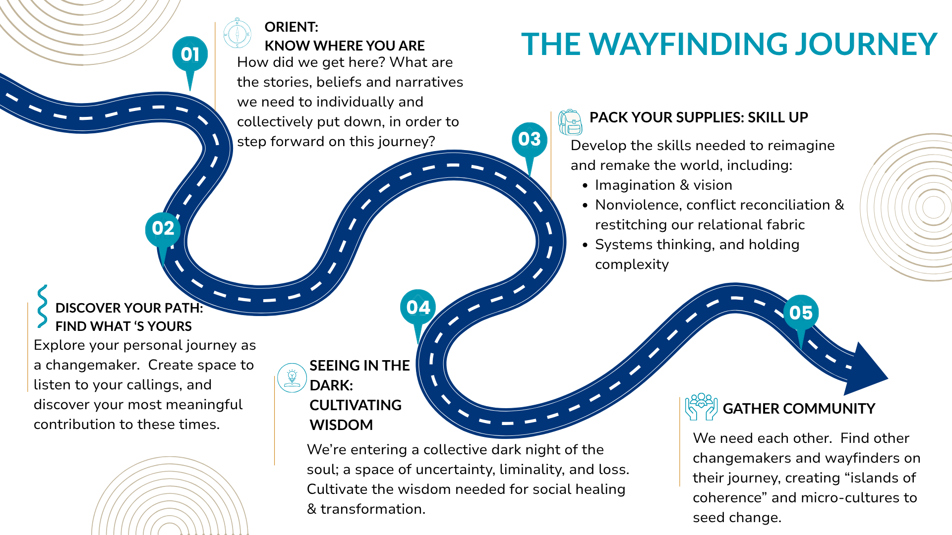 The journey of Cultural Wayfinding outlined below is the journey between the world as it is and the world as it could be.